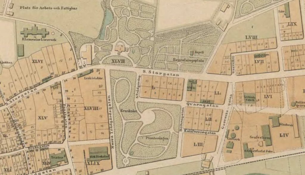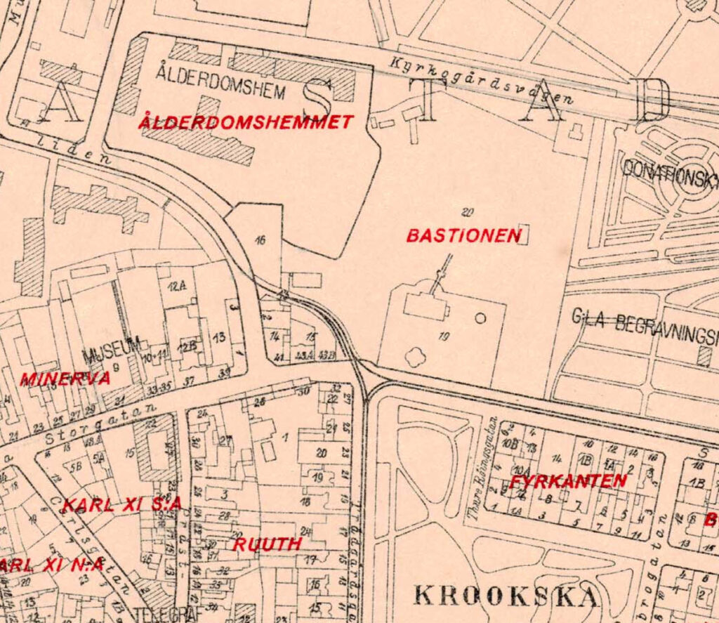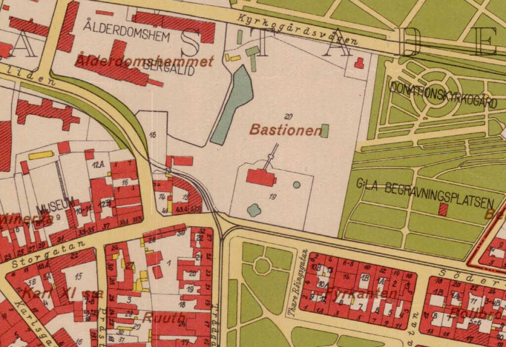 Bilder som jag har hittat i Carlotta visar att det har varit en stallbyggnad på adressen Södra Storgatan 45. Dock kan man inte riktigt se den adressen utsatt på dessa kartor, de slutar med 43A och 43B.