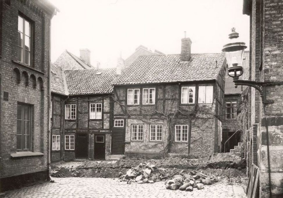 Gårdshuset längst till höger på bilden inhyste två familjer, nämligen familjen Pihlblad och Johansson. Pihlblad drev en begravningsbyrå på S Storg.”